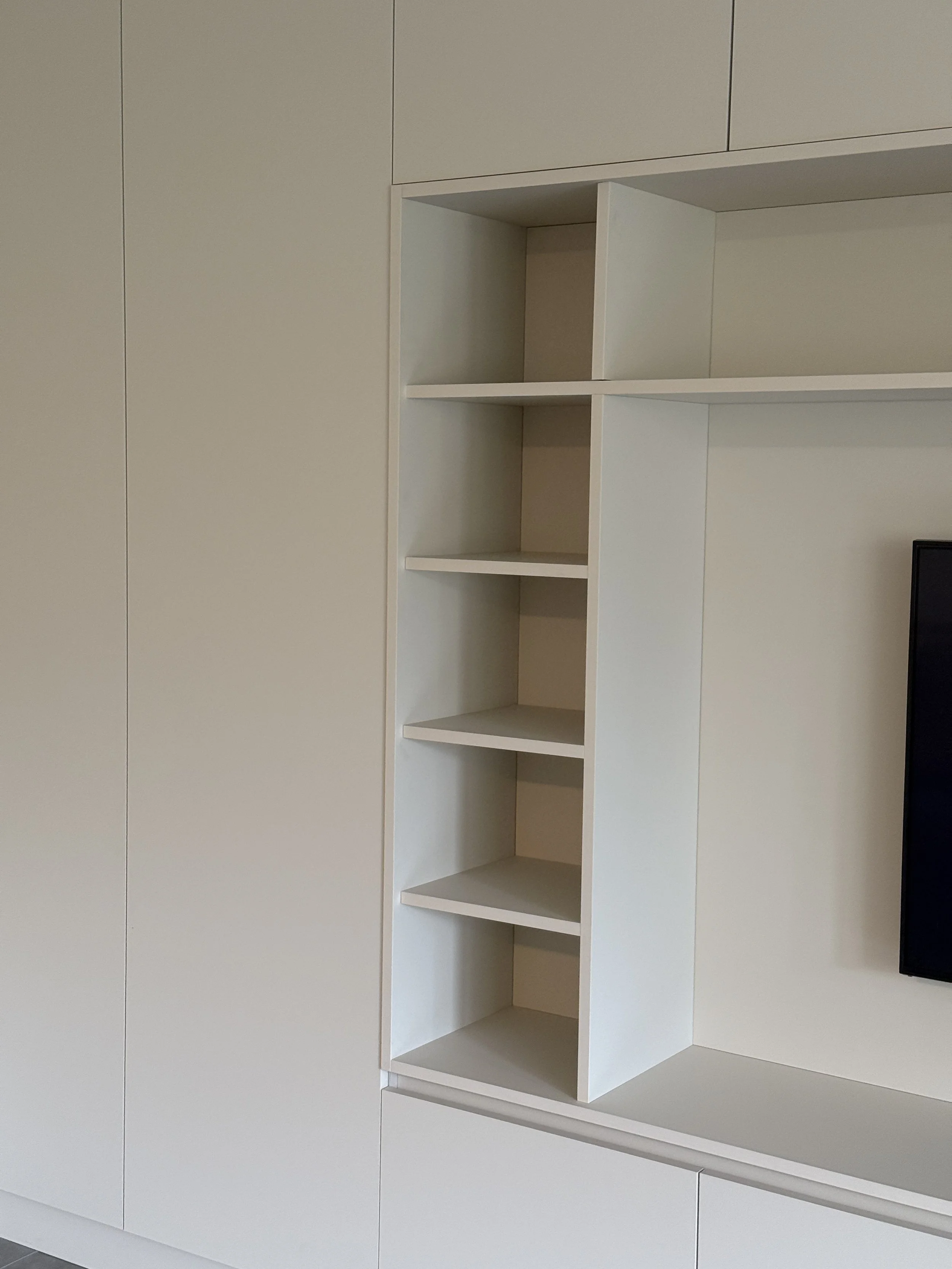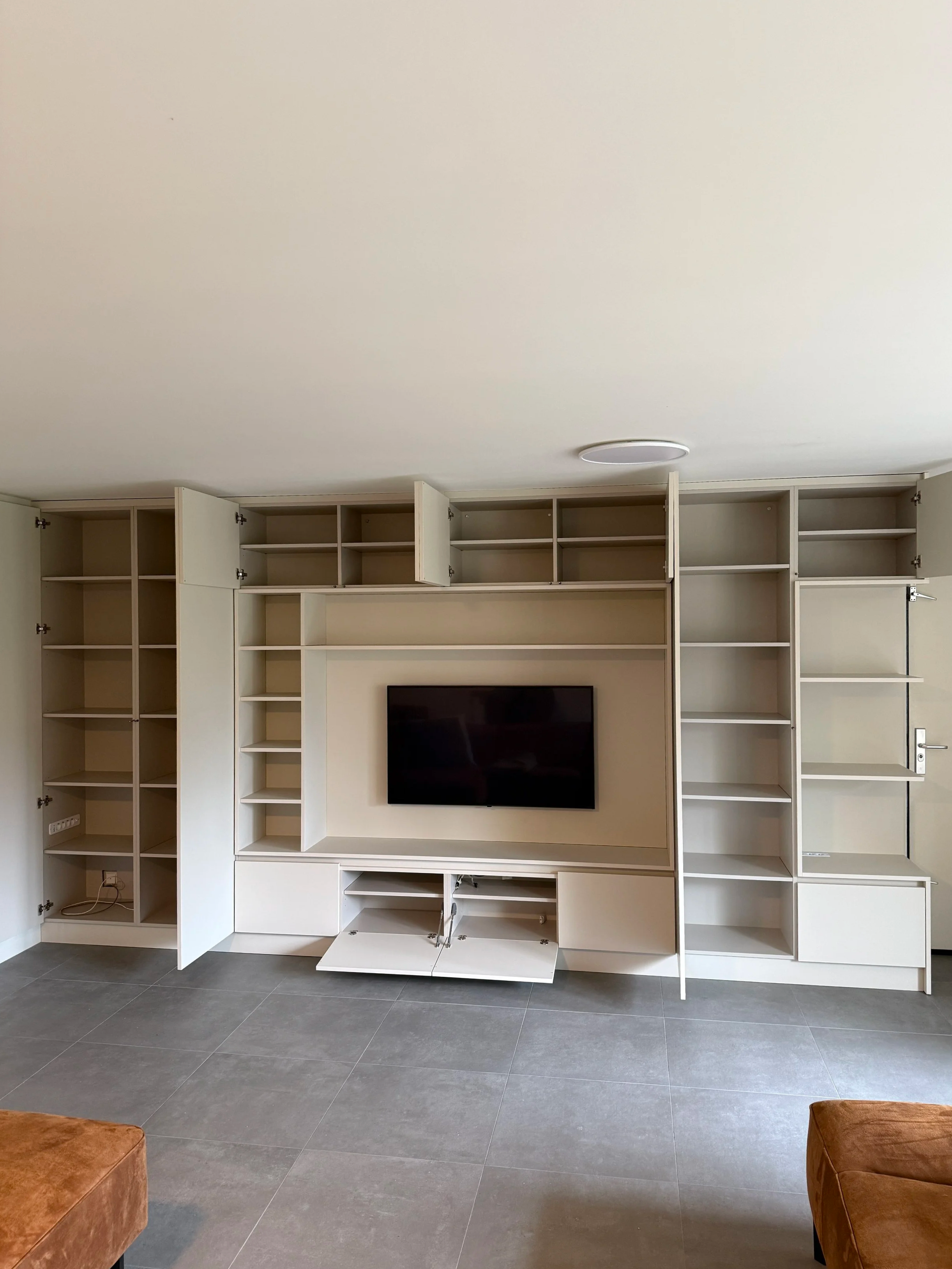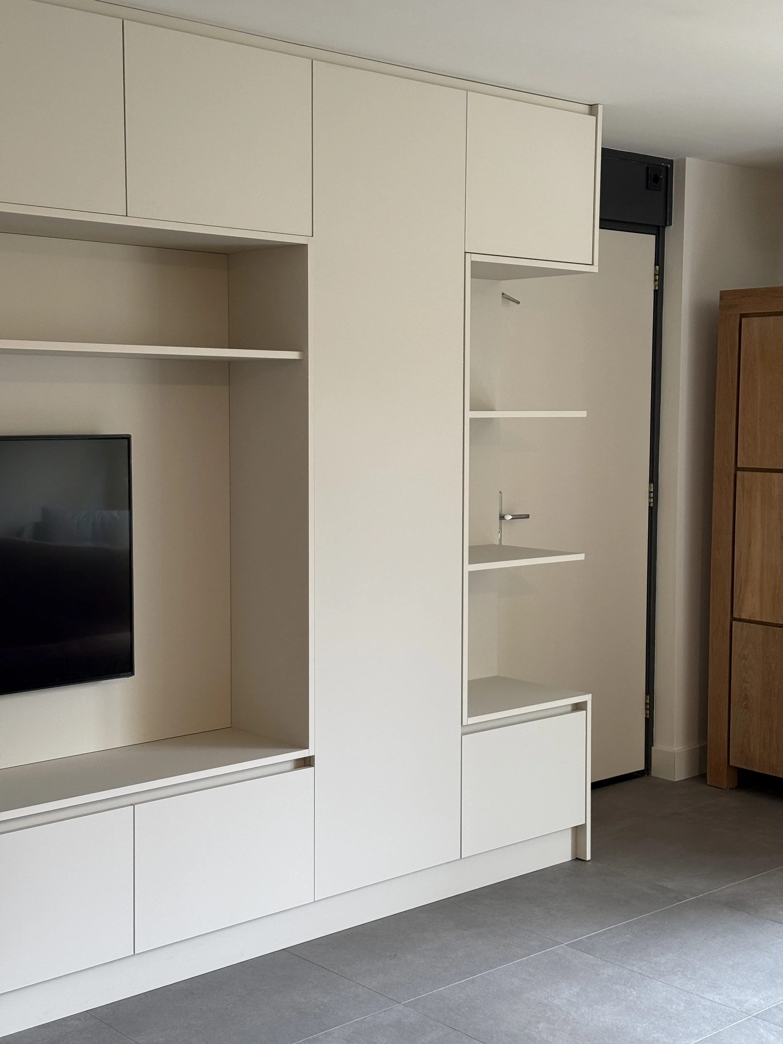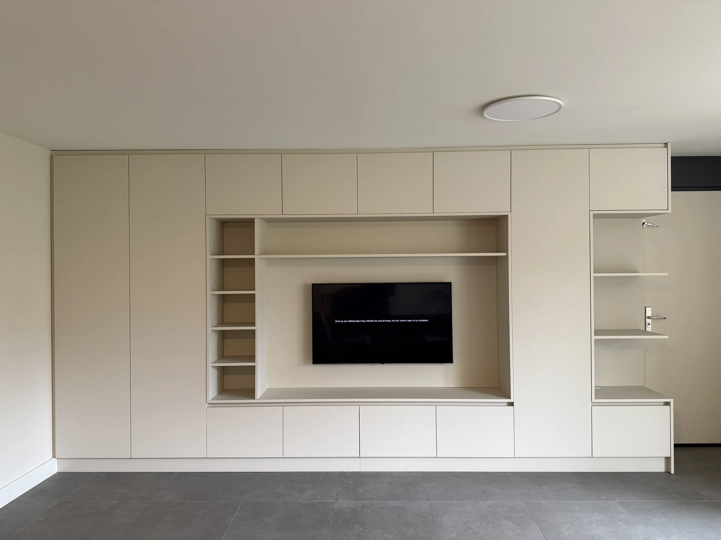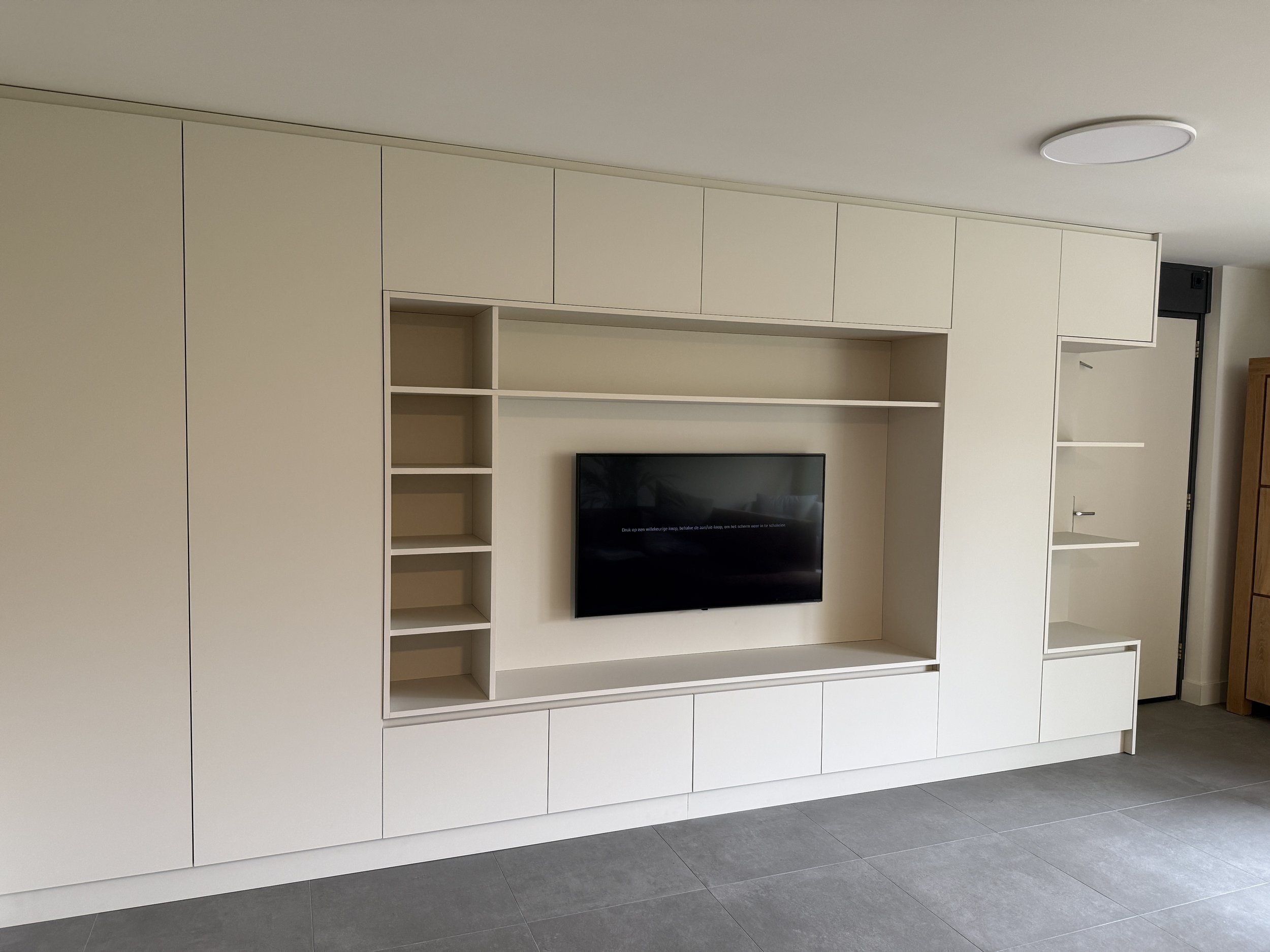 Voor dit project heb ik een grote maatwerkkast gerealiseerd waarin rust en functionaliteit samenkomen.